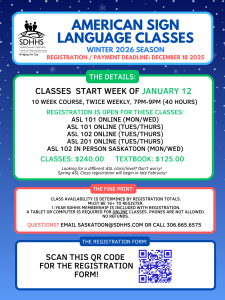ASL Classes provide a structured environment for students to learn ASL from professional ASL Instructors. The ASL Classes at SDHHS use the Signing Naturally curriculum to help you understand how ASL works and to learn how to sign confidently. This allows you to feel comfortable communicating in the d/Deaf and Hard of Hearing community ASL users.